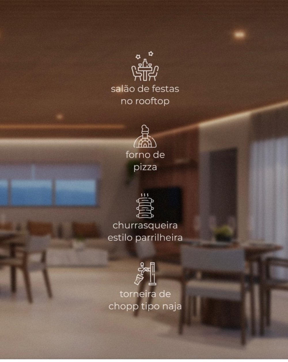 Salão de festas com torneira de chope tipo Naja e forno de pizza